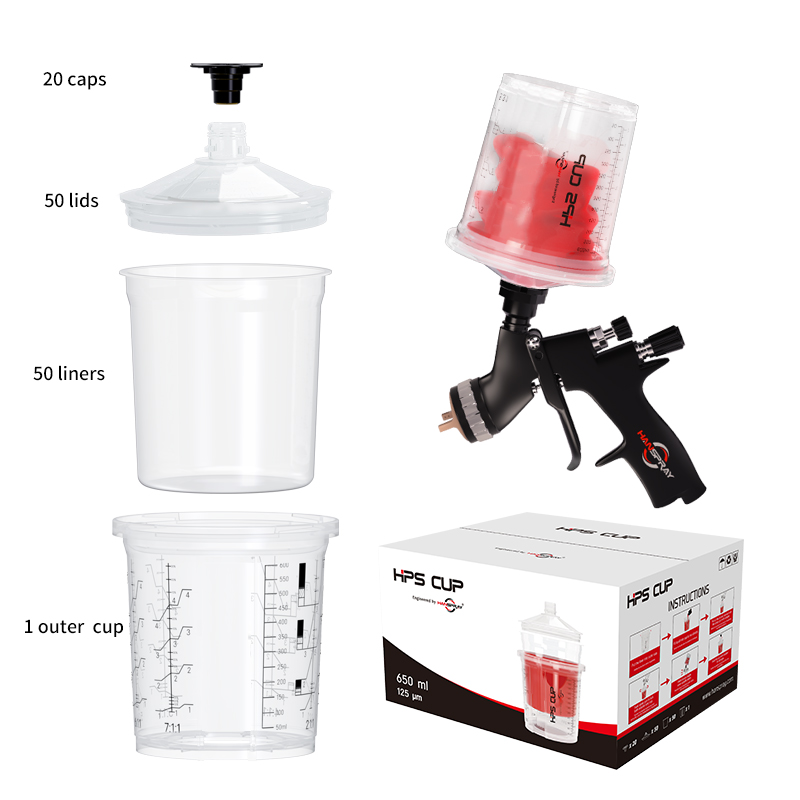 Faites l'expérience d'une précision sans faille et d'un nettoyage sans effort avec les gobelets HPS - le choix de confiance pour le mélange et la pulvérisation de la peinture par les professionnels.Taille