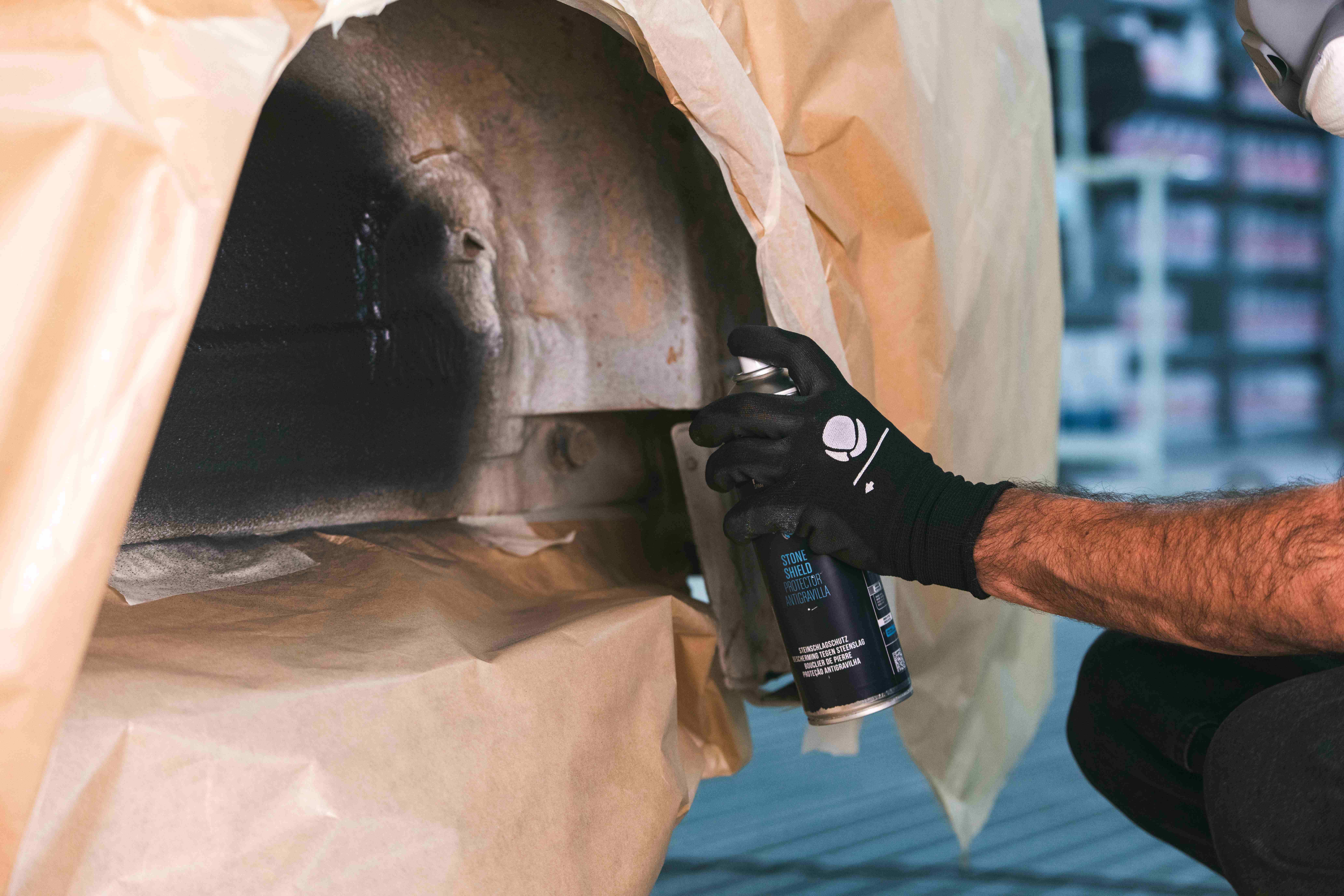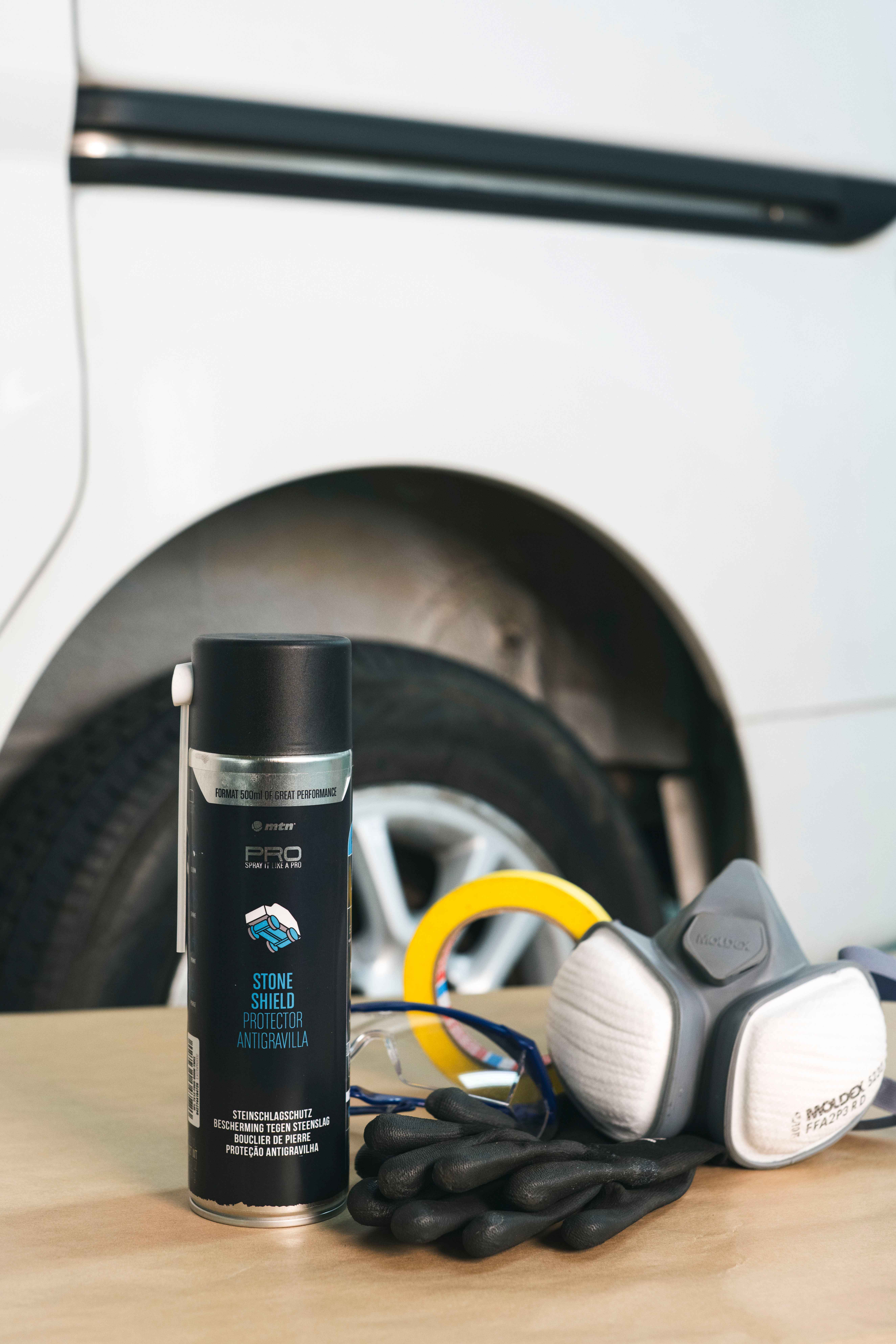 Stone Shield is a product designed to effectively protect different parts of the vehicle against gravel projected during driving. Its thickness considerably muffles engine sounds and vibrations, and it can also be applied as a protector for the lower parts of the bodywork and/or wheel arches. It is designed to replicate the manufacturer's original finish, with excellent adhesion, elasticity, and good resistance to corrosion and cold weather. Once dry, it can be repainted with a bodyshop base coat.